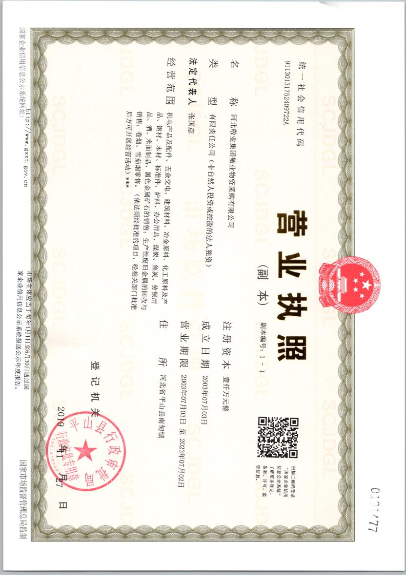 河北敬业集团敬业物资采购有限公司营业执照-正本